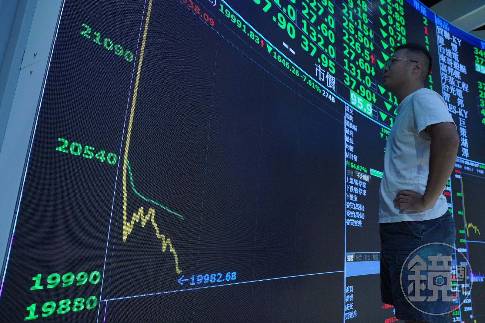 台股單日跌幅沒有最低,只有更低!股民上週才哀嚎從台股畢業,預計今天將出現更多「畢業文」。上週五(8/2)台股才創單日最深跌點、重挫1,004點,今天跌勢未止甚至更慘,收盤跳水1,807點、跌幅超過8%,失守2萬點關卡,來到19830.88點,並下探半年線,櫃買指數同樣殺逾8%。