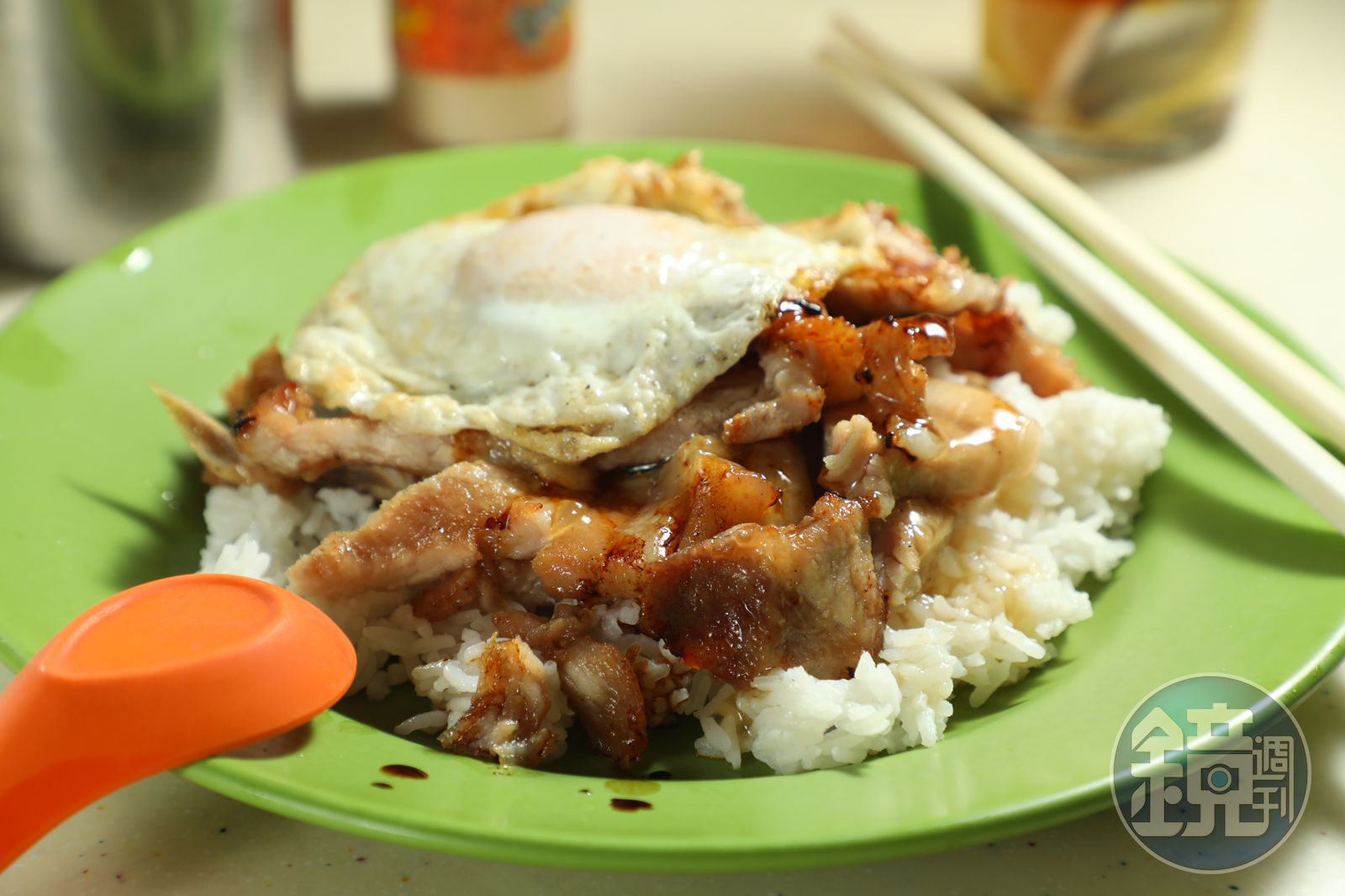 等待期間和隊伍裡的本地上班族討論餐點,菜單上有麵、有飯,他們一致認同點「金牌豬扒飯」就對了!招牌「金牌豬扒飯」分量十足,即點即做,有厚度的豬排煎得剛剛好焦香,肉汁全鎖在裡頭,配上一顆半熟荷包蛋,戳破後,蛋液四處流淌,混進香濃醬汁與米飯中,大口下肚真的超滿足。