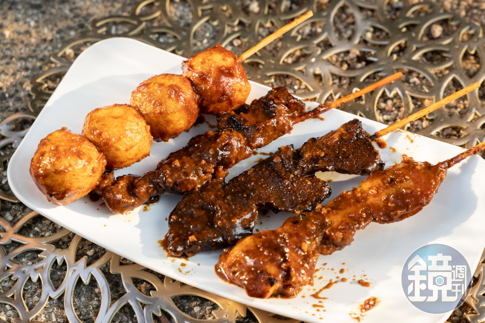 平常怕吃羊肉的人,吃羊肉爐、炒羊肉時,一定常聽旁人勸說:「這沒有羊騷味,你試試。」真要我說,若要挑戰羊肉入門,請給沙爹一個機會,鹹香的醬汁才能真正蓋過騷味,只吃得到肉汁與醬香。