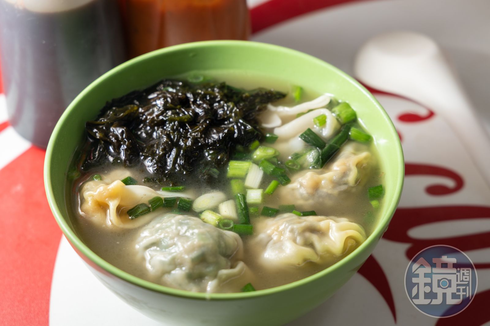 有了前車之鑑,小心翼翼再加點了一碗「紫菜木耳餃」,紫菜榮登本日最愛,老闆超大方,紫菜足足加了快三分之一碗,泡在湯裡的紫菜又鮮又嫩;飽滿水餃塞滿肉餡與木耳,增添了爽脆口感,吃完水餃連湯都想喝光。