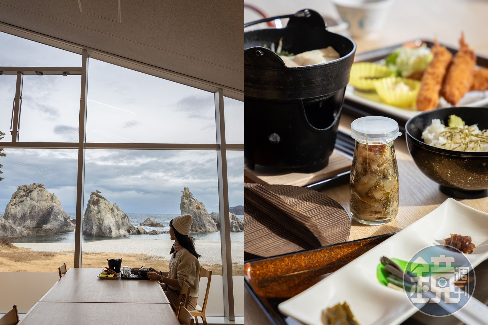 冬天的淨土之濱雖然不太適合下水游泳,寧靜氛圍反而吸引更多喜歡健行散步的遊客。除了令人屏息的自然景觀,來到以海鮮著稱的宮古市,更不能錯過當地名物「瓶丼」。這道料理的靈感來自於當地漁民會將新鮮海膽置入空的牛奶瓶中,再灌入經過滅菌的海水,以確保海膽鮮美。