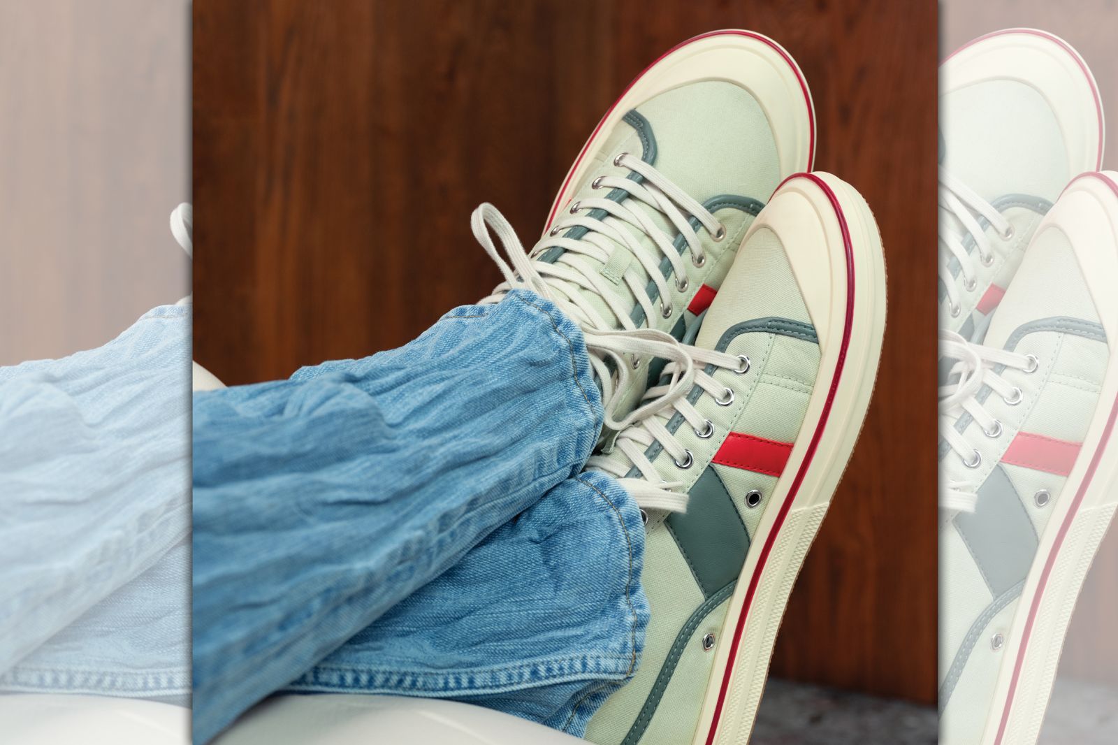 2025春夏季節,BOTTEGA VENETA推出全新男女鞋履ELIOT系列,從1980年代的復古籃球鞋找尋靈感,採用中筒鞋型設計與輕盈的夏季帆布材質,搭配鮮明可見的小牛皮邊飾,以懷舊的運動風格和極具現代感的簡潔線條,展現出對經典與創新的完美詮釋。
