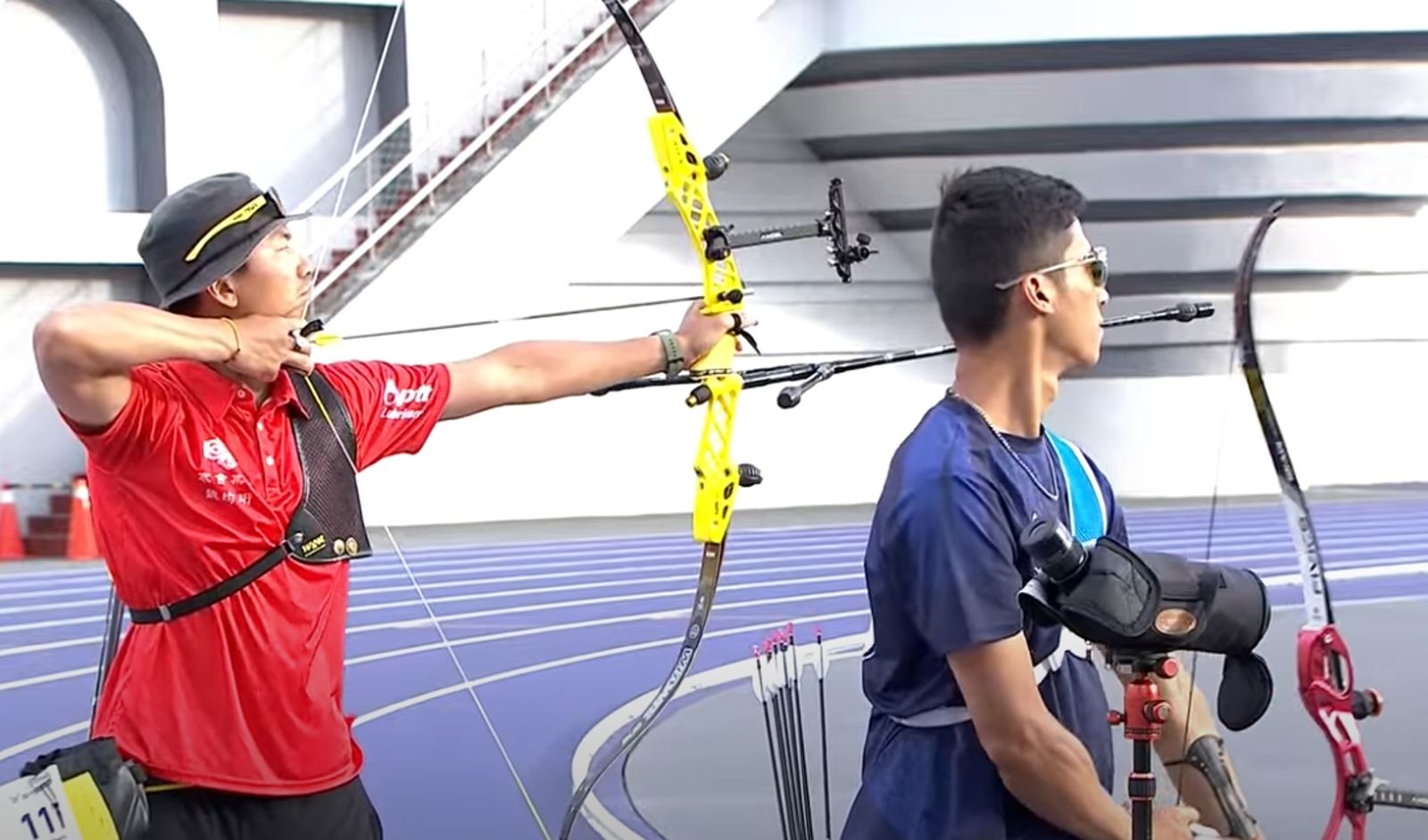 世壯運射箭比賽今日仍在新北市板橋運動場舉行,和前兩天飄雨天氣冷颼颼截然不同,今日比賽艷陽高照,舉行反曲弓各年齡男女組賽事。