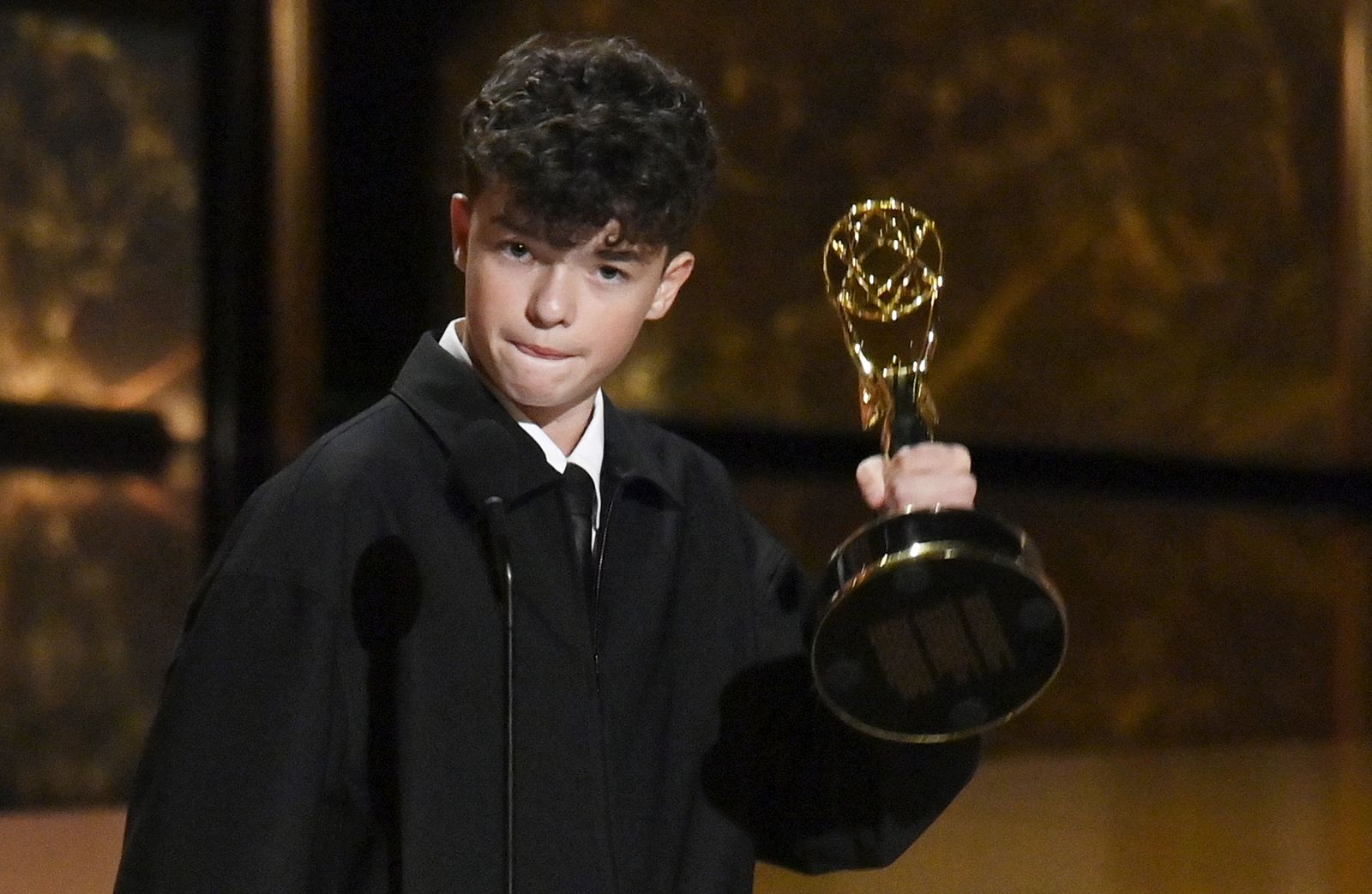 拿下6個獎座的影集《混沌少年時》,全劇都是一鏡到底拍攝手法,加上討論未成年的犯罪議題,一推出就是成為熱門話題。今年15歲、飾演兇手的英國童星歐文庫柏,表示得獎真的太超現實了,「3年前,我什麼都不是。畢竟,幾年前我開始上戲劇課,壓根沒想過我會來到美國,更不用說上台。所以我想這證明了,如果你傾聽、專注、願意走出舒適圈,可以取得任何的成就。」