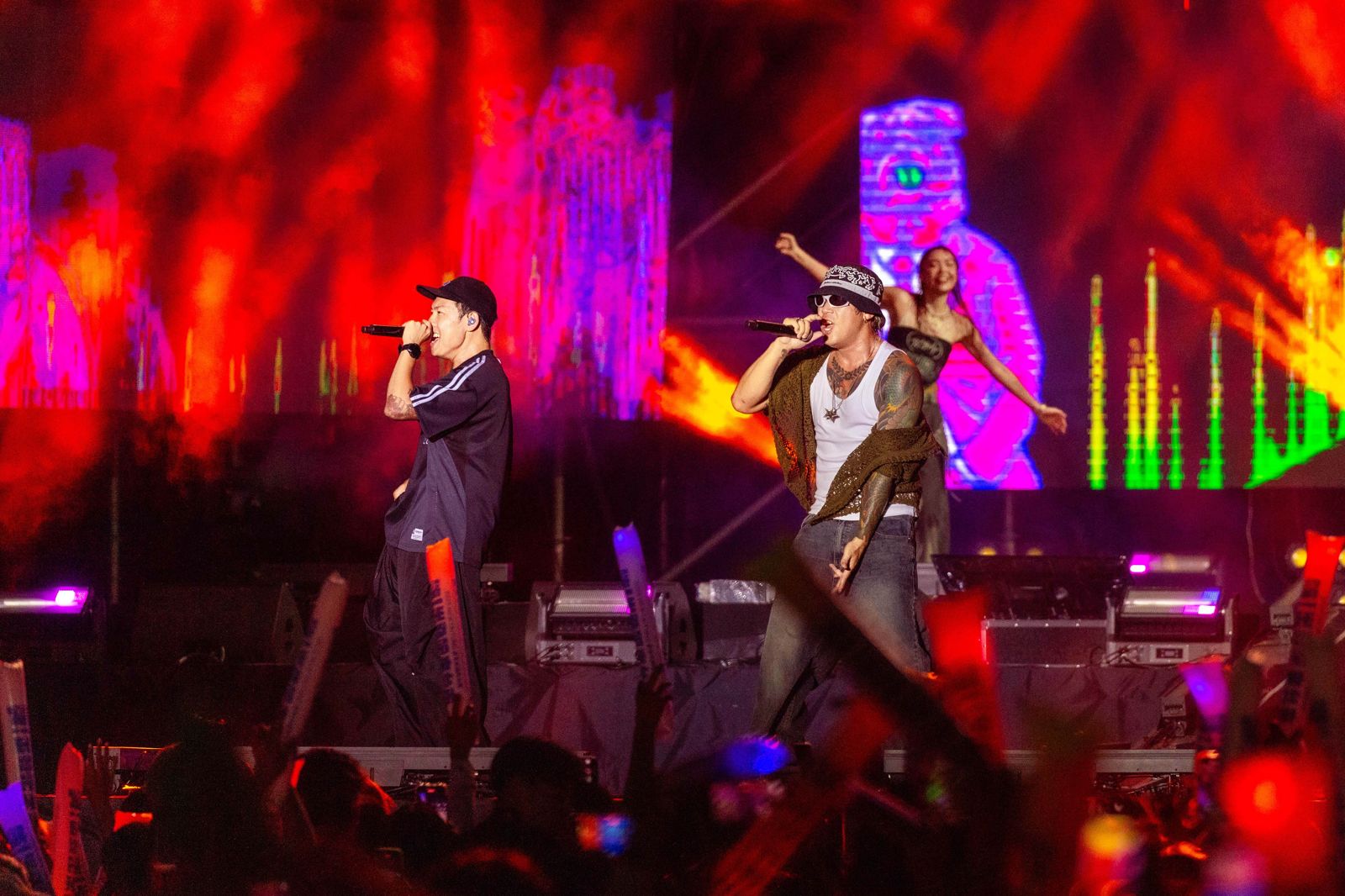 Marz23昨晚從暗黑的Rocker搖身一變為唱跳歌手,〈癡情暈船仔〉帶著兩位女舞者在台上跳滑步舞,〈情勒〉前奏一下,他問:「Are you Fxxking Ready?」唱到一半又下令:「我數到三,我要所有人的腳離開地板!」過去3天,他從澎湖、大巨蛋唱到台東,他說:「今天應該是我這個月最後一場演出了,所以我會毫無保留。」他提醒現場觀眾自己11月22日將在小巨蛋開唱,希望大家除了支持GD權志龍,也能支持他這位「本土林志龍」。