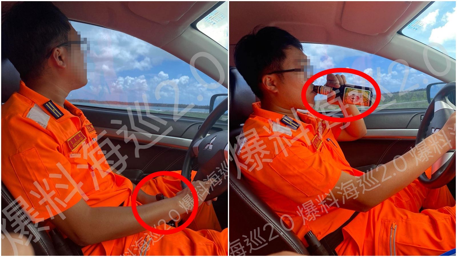 爆料人接著指出,黃男如今調職到馬公最大港依舊學不乖,「從來沒有聽說過進排長寢室還要請示進入的,還是說中校所的排長比較大?這種人還可以續簽,真的是沒天理。」爆料人附上黃男邊喝保力達邊開車及在柑仔店購物的照片。