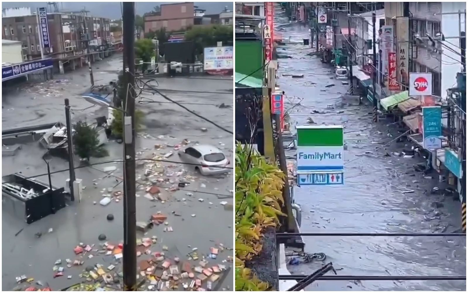 花蓮縣今天承受大量雨水,馬太鞍溪堰塞湖壩頂於下午2時50分溢流,黑褐色洪水向下游迅速沖刷,導致馬太鞍溪橋被沖斷,堤防迅速潰堤。接著大水瞬間湧入光復鄉,形成汪洋一片,滾滾洪水湧入的畫面在網路上曝光後,嚇壞許多台灣民眾。