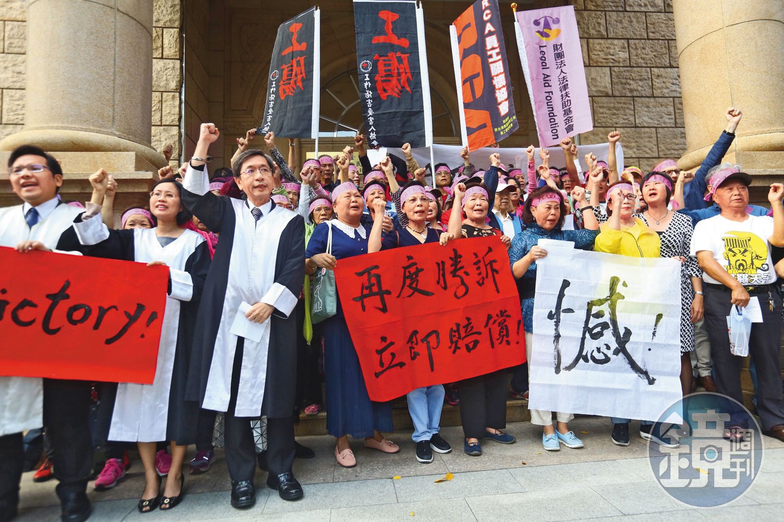 受害者太多,官司漫長,一晃來到2015年,台北地方法院宣判,奇蹟似地,自救會贏了!法官並罕見地採用「揭穿公司面紗原則」,讓RCA即使脫產也賴不掉,母公司須連帶賠償五億多元。2017年二審,高等法院將賠償金提高到7億多元。如今,部分賠償金已發放,自救會捐出一部分金額,由勞動部成立公益信託,作為未來弱勢勞工打官司的經費。