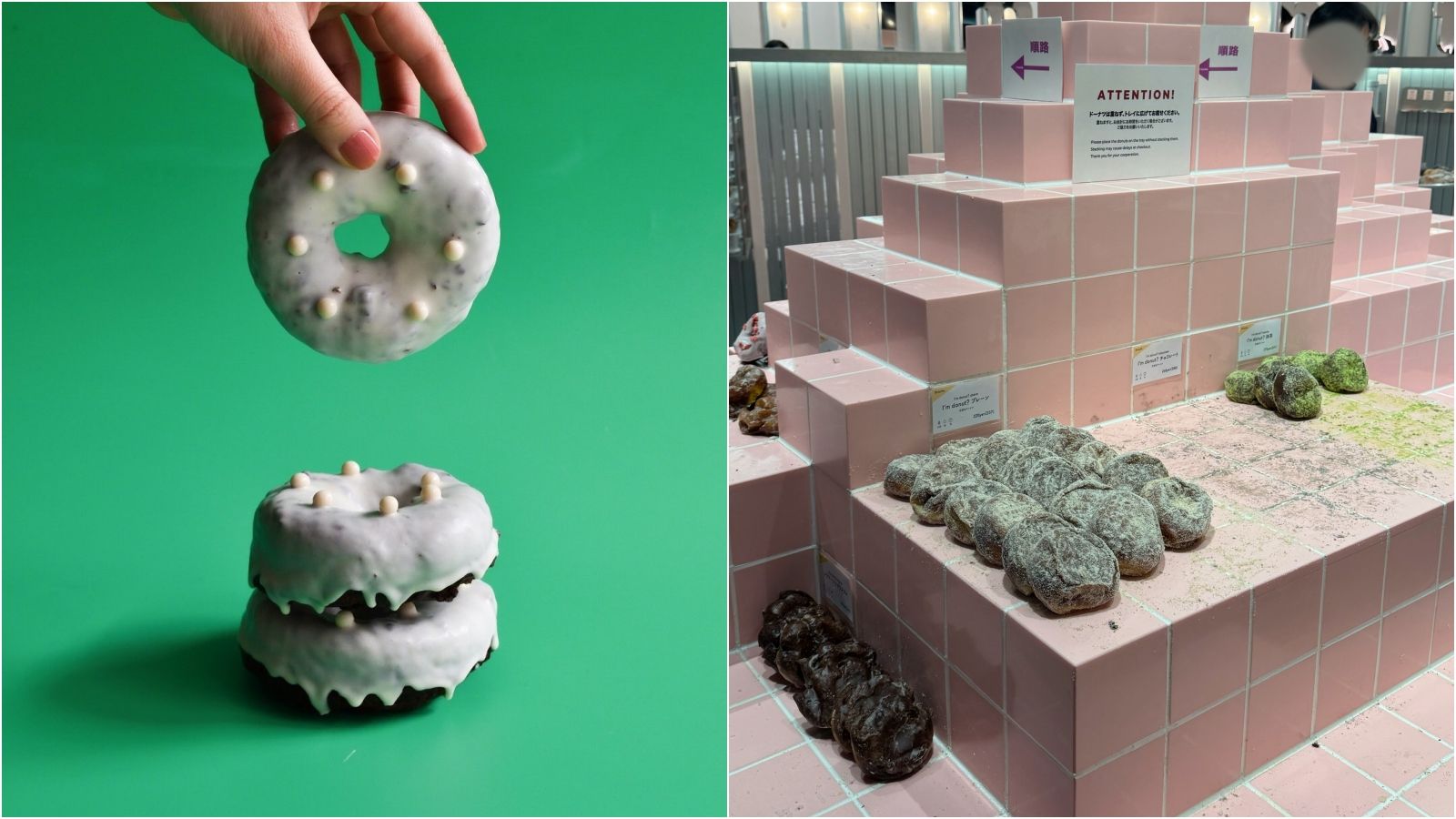 這間分店位於日本澀谷宮益坂,10月11日開幕,他們以品牌代表色粉色磚瓦做為甜甜圈的陳列台,主打可愛及時尚風格,照片可見多種口味甜甜圈,就直接「裸放」在立方體造型檯面上,產生視覺衝擊。