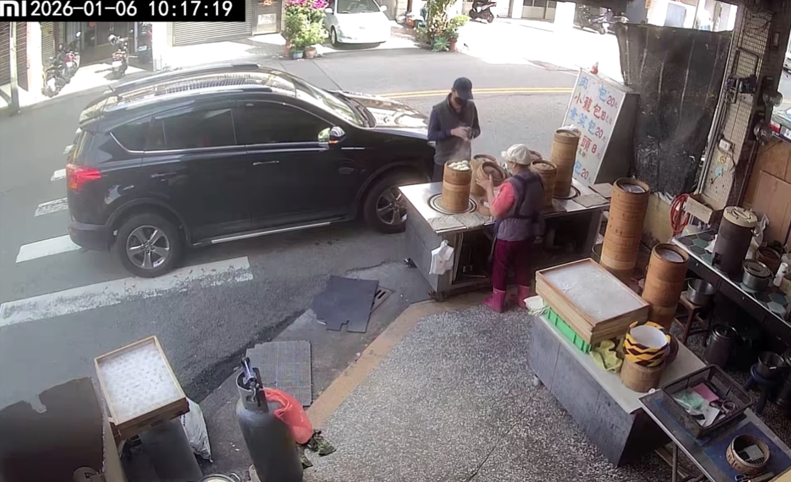 肉包店老闆賴先生表示,當時他正好在樓上檢查要維修的工具電池,突然聽到外頭大喊「趴下」,一開始還以為是行車糾紛,直到跑下樓才發現是警方在抓人,而他的母親就站在攤位前,近距離目睹整個過程。