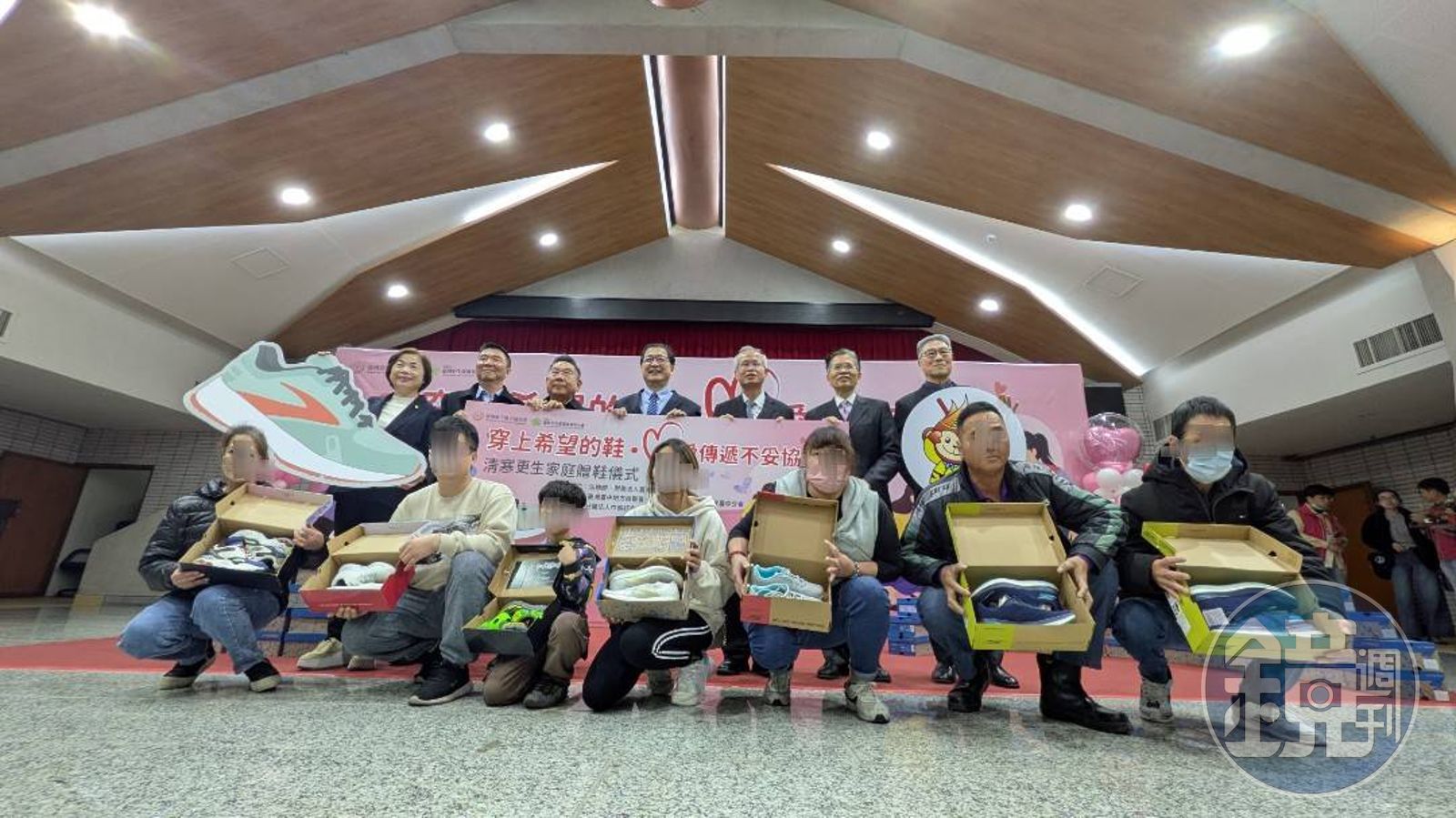 由於送鞋活動頗受各界好評,更保協會再針對經審核評估通過列為家庭服務個案的近百個更生家庭,送出全新名牌鞋。更生人小琪帶著重度身障的16歲兒子上台進行受贈儀式,當兒子穿上新鞋後,興奮大喊「謝謝大家」,其激動神情,讓現場人生十分感動。