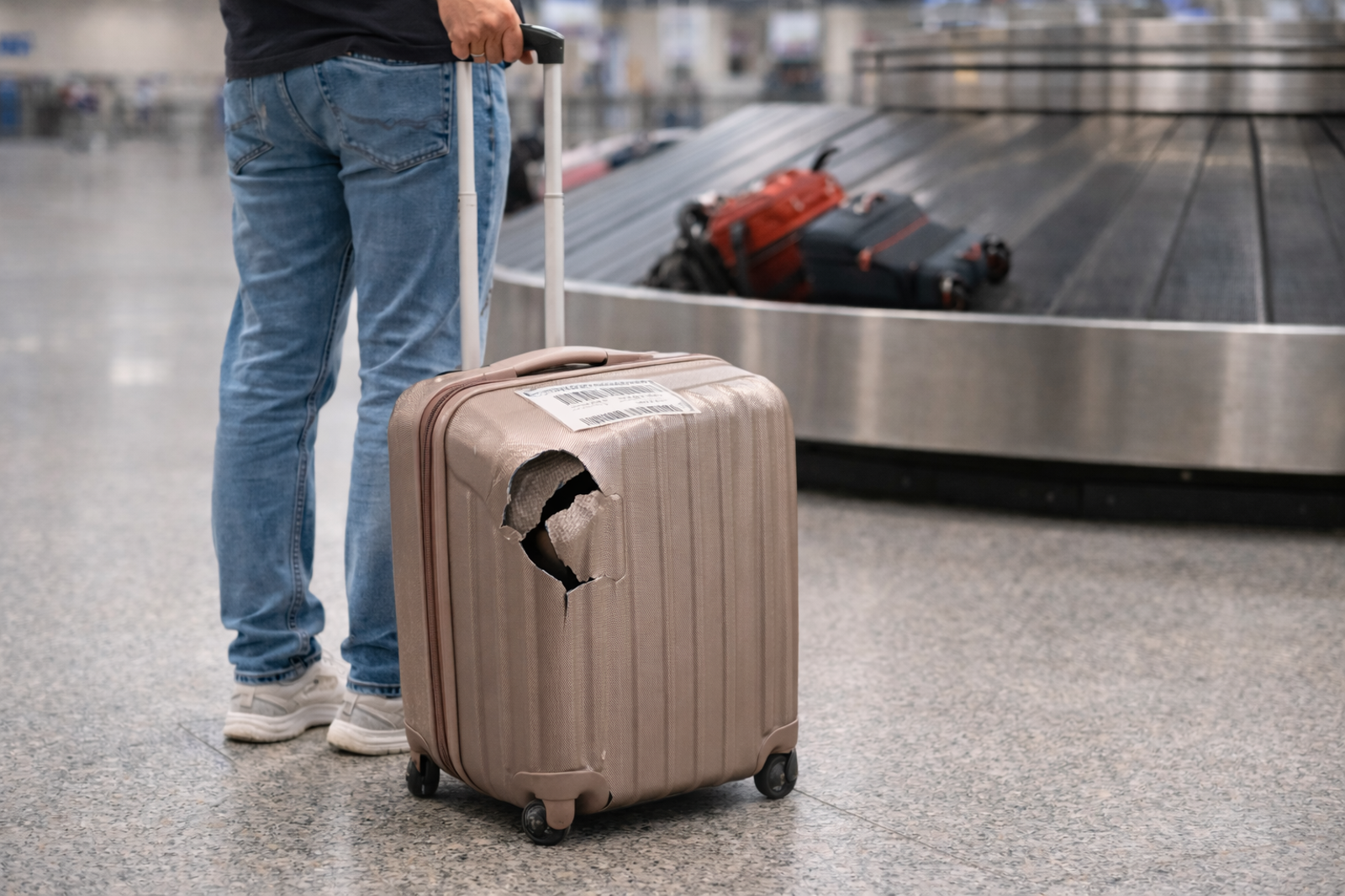 據報,有旅客在「爆怨公社」發文指出,出國跟團搭了泰獅航,沒想到下飛機後發現行李箱慘不忍睹,有5個人受害,有人的行李箱破損,有人的則是輪子帶殼直接消失。