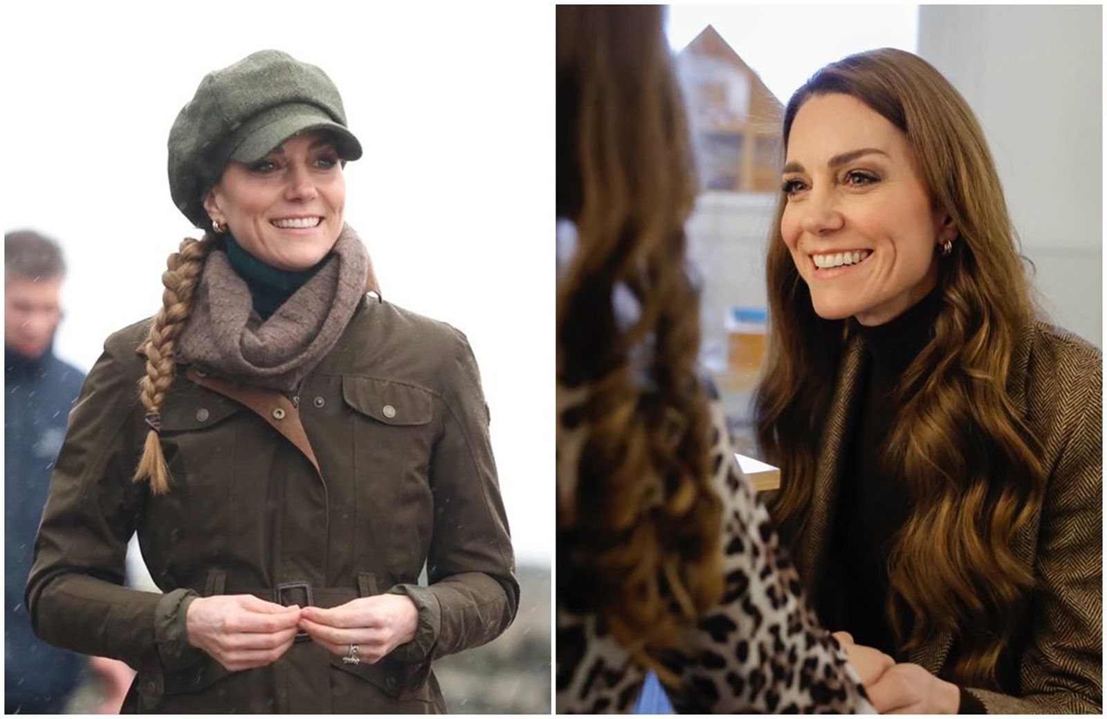行程最後,凱特前往皮克區,與心理健康慈善組織「Mind Over Mountains」一同健行,透過戶外活動倡議自然療癒的重要性。由於天候不佳,她罕見把頭髮綁成一條辮子,服裝也換成Dubarry of Ireland橄欖綠外套、Holland Cooper棕色牛仔褲,以及Berghaus登山靴和Really Wild Clothing報童帽。一日穿搭從都會風,轉為實用自在的戶外風格。