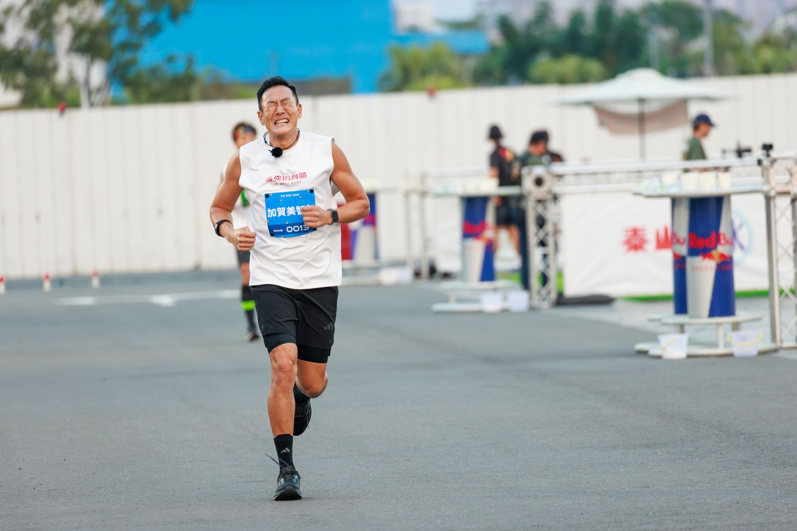 同為「50+男單」的岑永康則背負「不能輸」的壓力上場,原來兒子Ethan才剛在「最強星二代」組別中奪冠,身為老爸誓言不能丟臉。擁有豐富三鐵與馬拉松經驗的他氣場十足,自豪表示51歲在組內反而是「年齡優勢」,更毒舌幽默對對手喊話:「不要難過,只要回家多練一點,應該也是跟不上。」