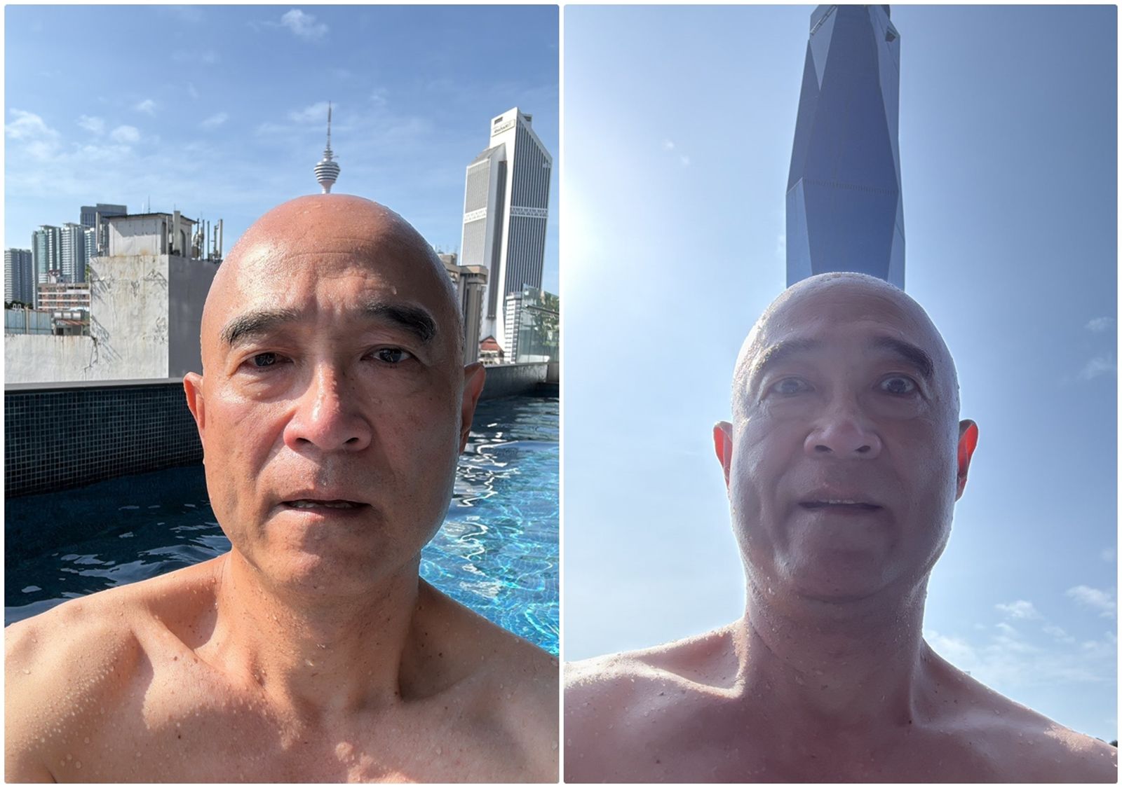 王治平近日在Threads貼文,曬出數張自己在游池的自拍照片,有好幾張都故意跟後方的大樓結合,像是從頭頂冒出來似的,他也搞笑留言,「我總是不放過成為獨角獸的機會 🦄」。