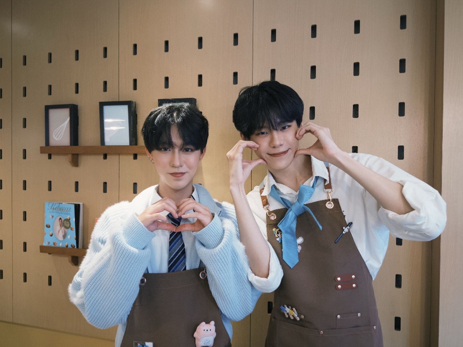 談到做甜點,梁哲維笑說自己其實一直很有興趣,平常也會跑DIY烘焙坊練手感,最近還和李冠緯在家一起烤蛋糕、挑戰話題滿滿的杜拜巧克力餅乾,雖然不到專業,但很享受完成作品的成就感。如果要為粉絲設計甜點,他會選擇蘋果肉桂口味,「就是那種很溫暖、很日常的幸福感。」李冠緯則透露自己私下就常下廚,甜點、料理都難不倒他,最拿手的是巴斯克乳酪蛋糕,最近也跟上風潮做杜拜巧克力;如果要送粉絲,他會選草莓鮮奶油蛋糕,「酸酸甜甜,很適合這種節日一起吃。」